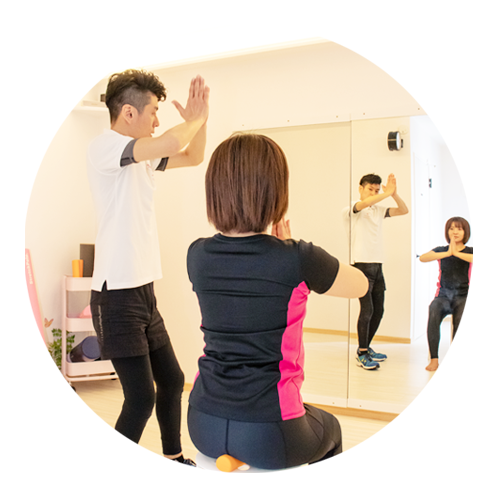 当スタジオでは、お客様の体の状態に合わせて、エクササイズを中心に体を整えて、本来あるべき姿に戻していきます。とはいえハードなエクササイズではなく、ヨガやピラティスのようにキープ系のエクササイズが多く、誰でも無理なく取り組むことができます。